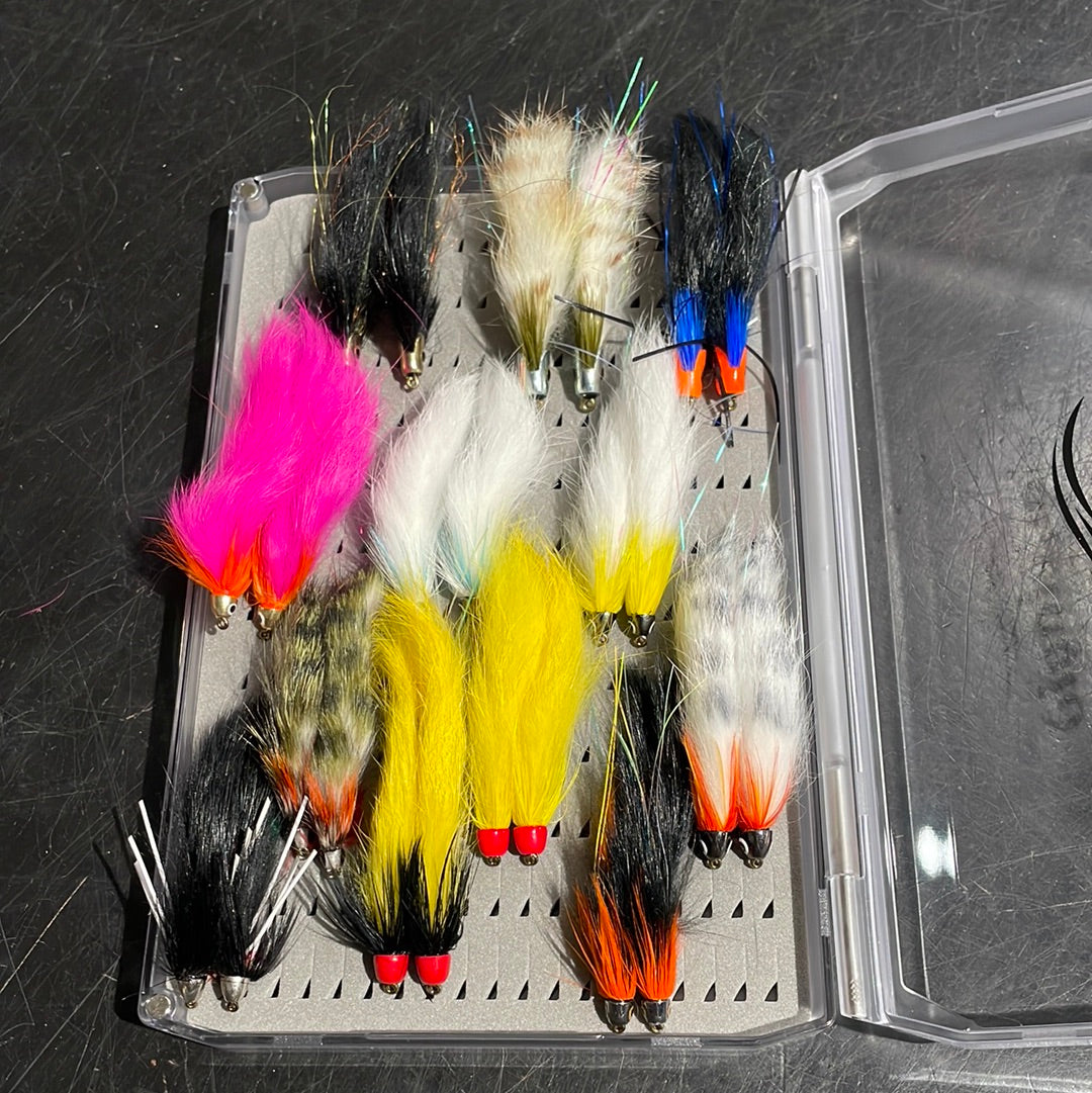 Boxið inniheldur meðal annars Black Ghost ( classic, sunburst og blue) , Þingeying, Dentist, heimasætuna, Golla og fleiri landsþekktar flugur.