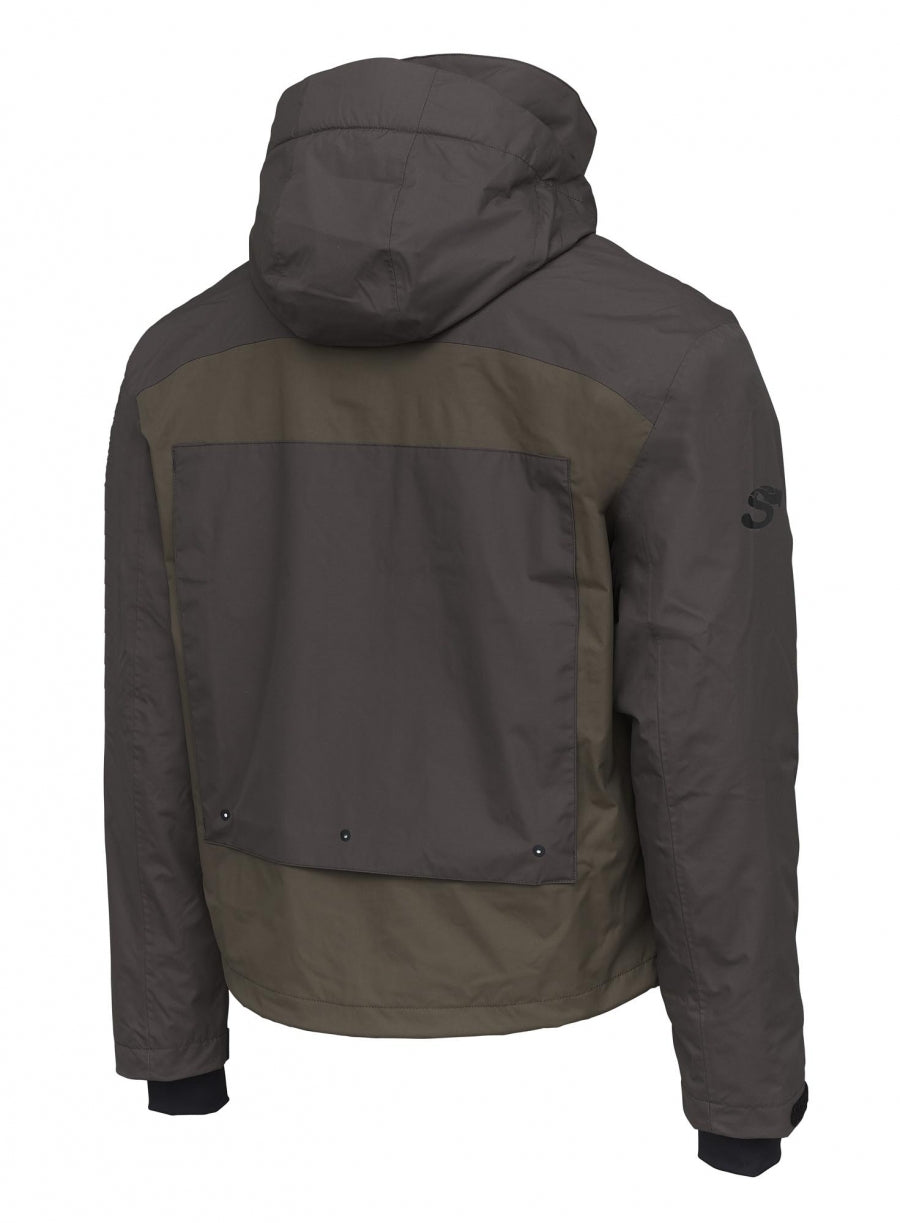 Nýr vatnsheldur vöðlujakki frá Scierra með góðri útöndun. Stórir brjóstvasar fyrir flugubox. Flísfóðraður handvermisvasi á hliðum. Stór stillanleg hetta. Stór vasi á baki með rennilás. Góður jakki á frábæru verði.